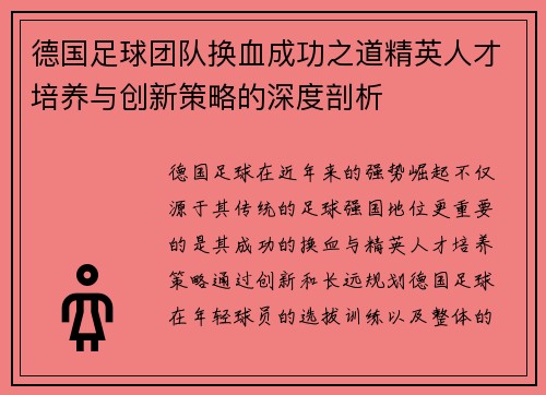 德国足球团队换血成功之道精英人才培养与创新策略的深度剖析